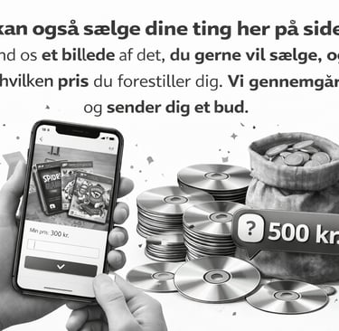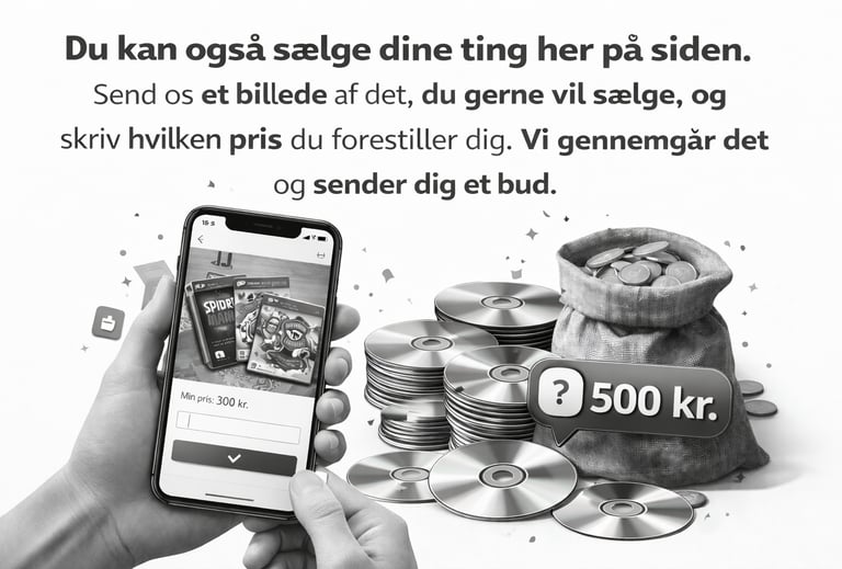 Du kan også sælge dine ting her på siden. Send os et billede af det, du gerne vil sælge, og skriv hvilken pris du forestiller dig. Vi gennemgår det og sender dig et bud.